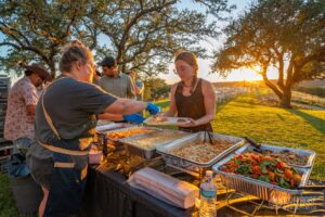 Elevate your dining with farm-to-table chef-prepared meals served in the Artemis Lodge dining room, out on the patio, or tables beneath the illuminated oak trees. Our culinary team creates seasonal menus that balance luxury with rustic charm—think Texas Wagyu paired with Hill Country wines and elegant summer desserts inspired by regional ingredients.